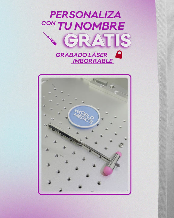 Realiza chequeo de reflejos musculares y evalúa la sensibilidad del paciente con la misma herramienta.